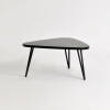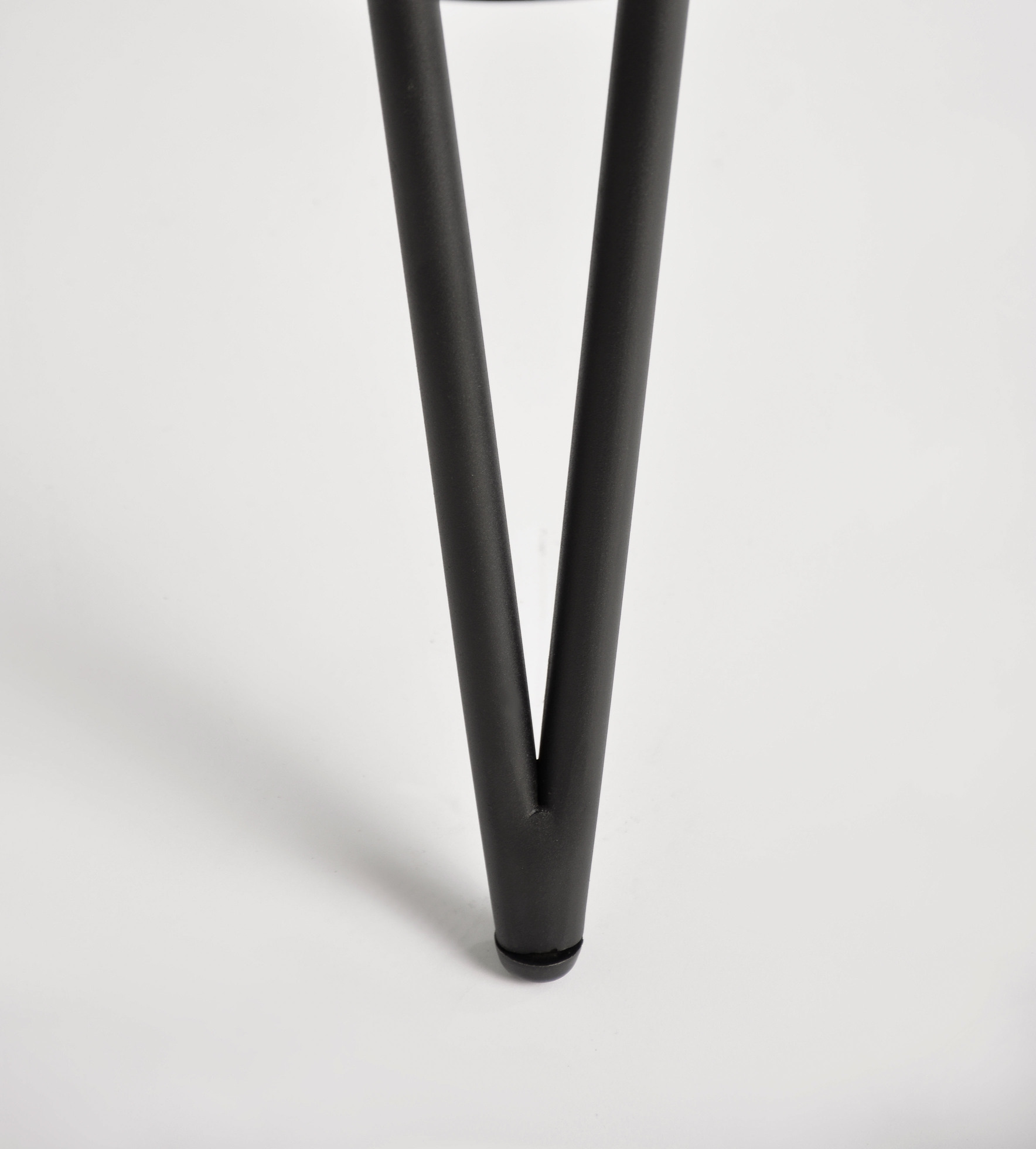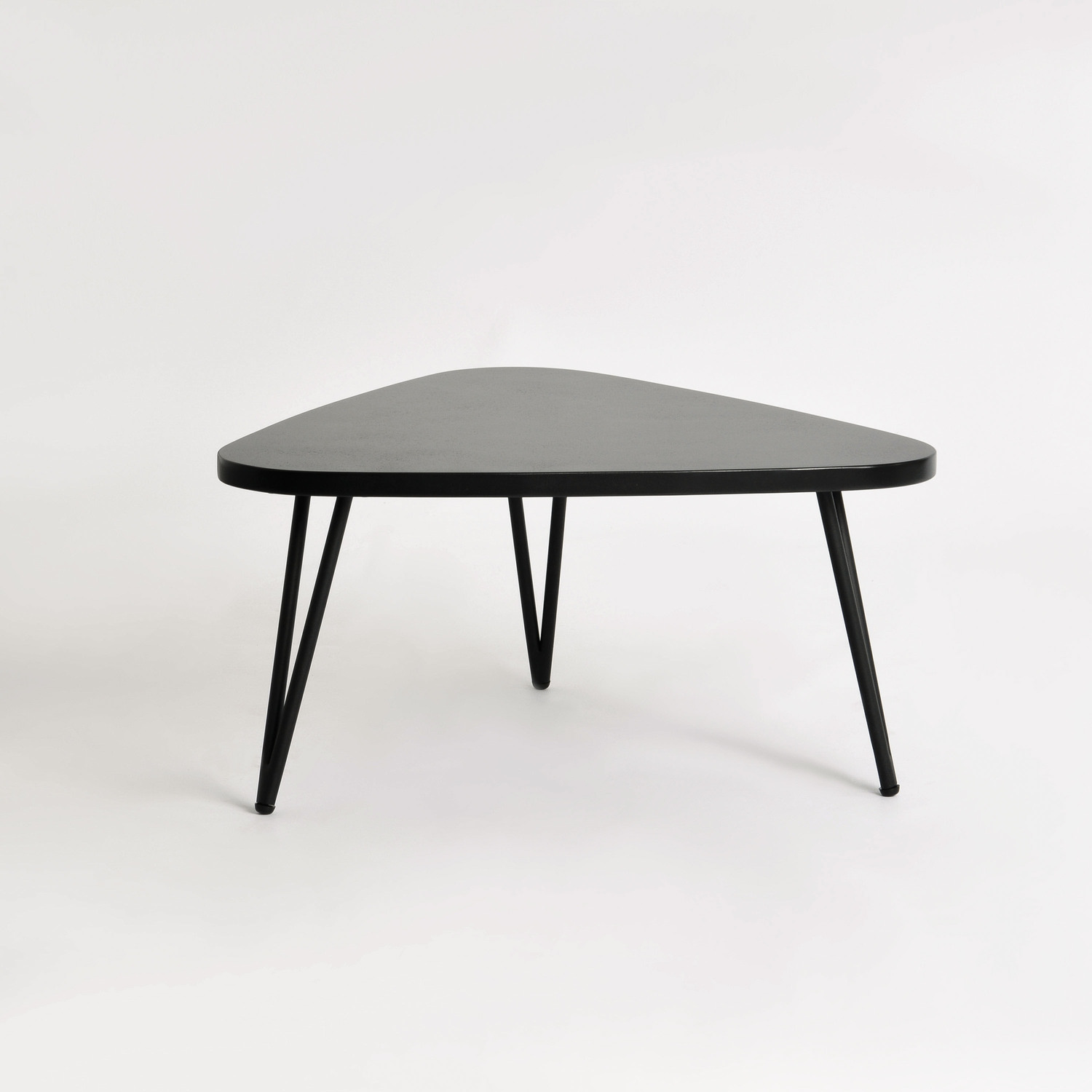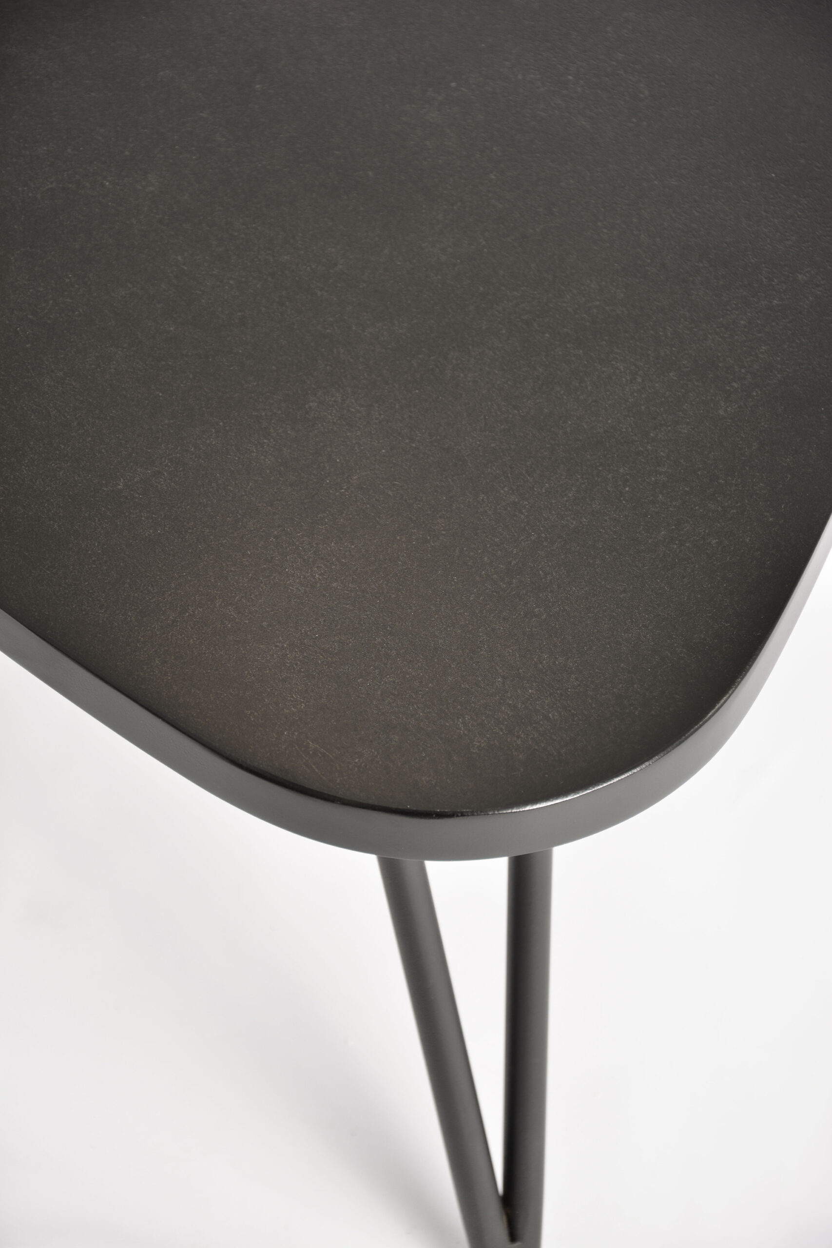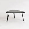 Retro -štýlový stôl s originálnym čiernym vrchom s napodobňovaním kamennej konštrukcie. Horná časť má rôzne povrchové textúry v jednotnej farbe. Výrobok má čierne kovové nohy.