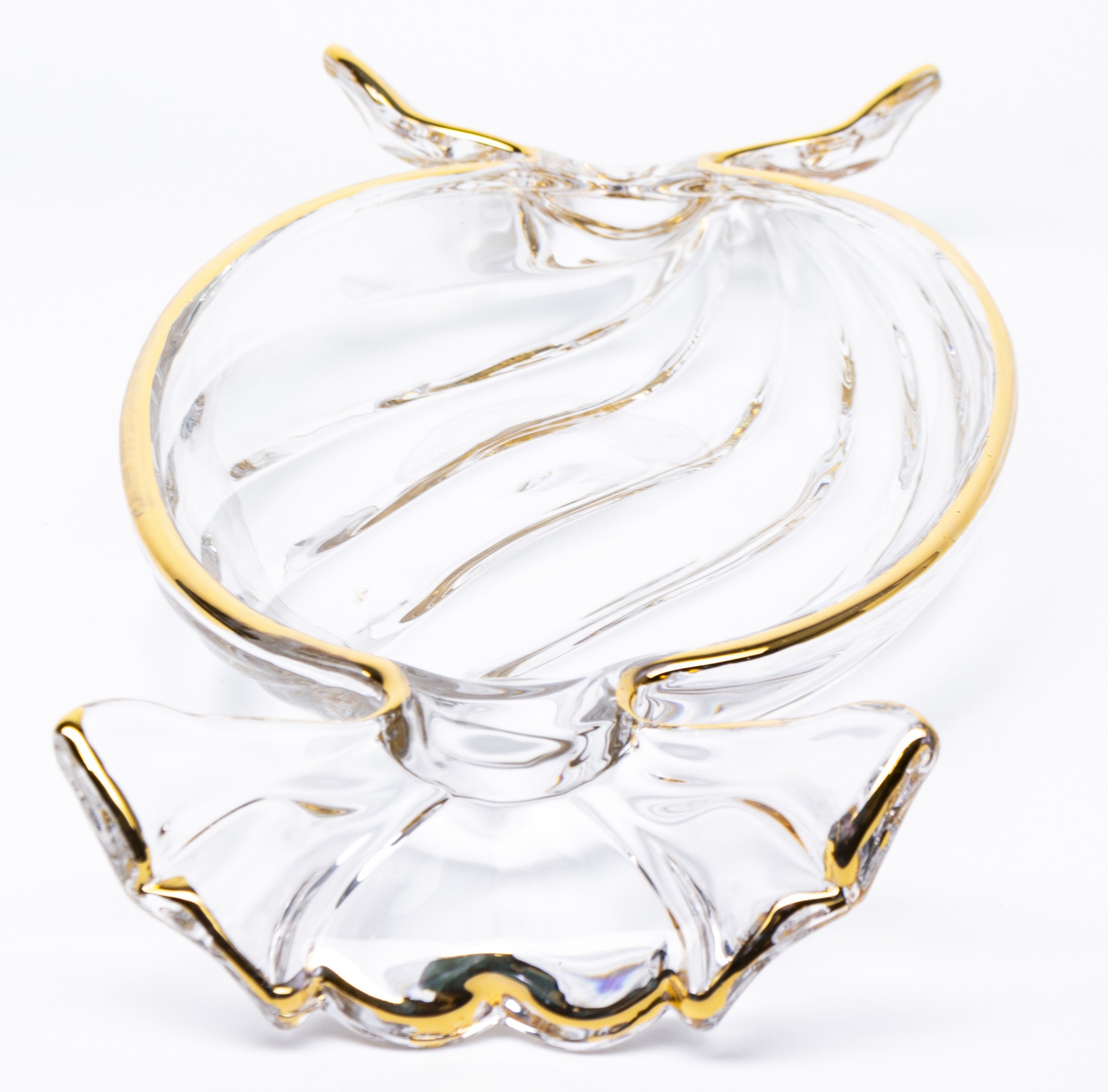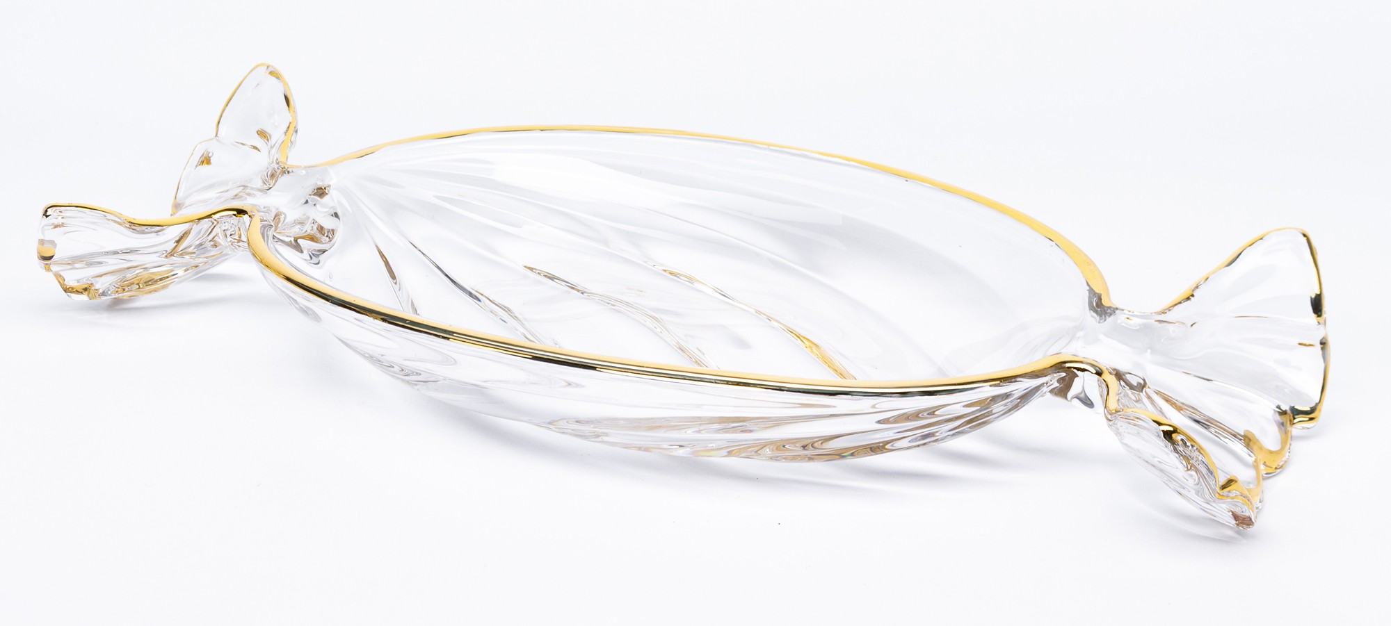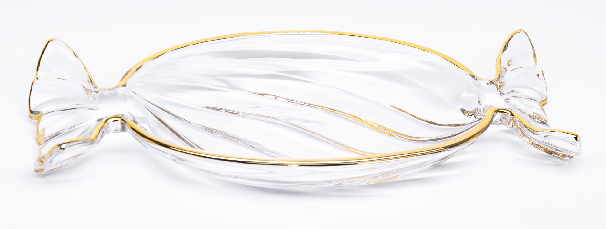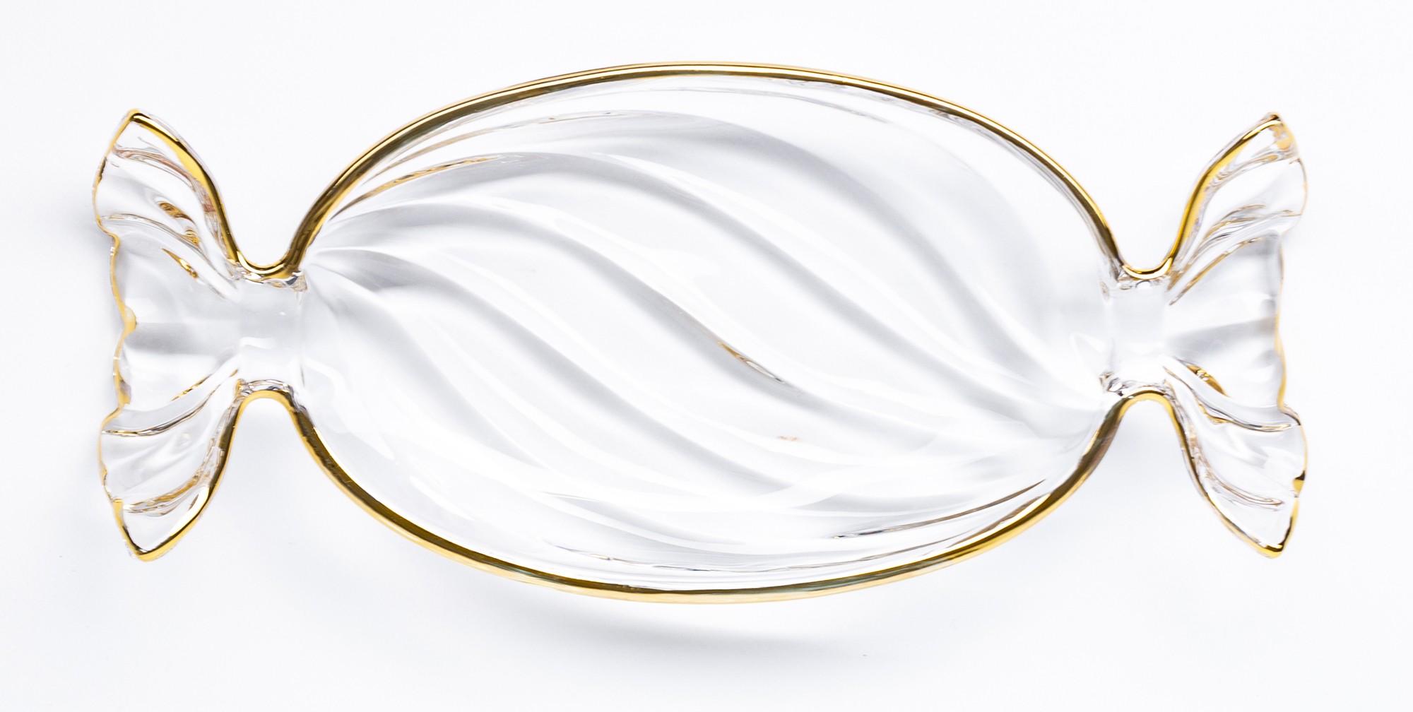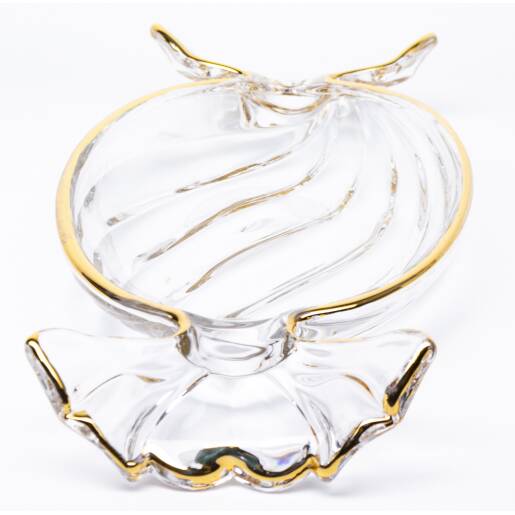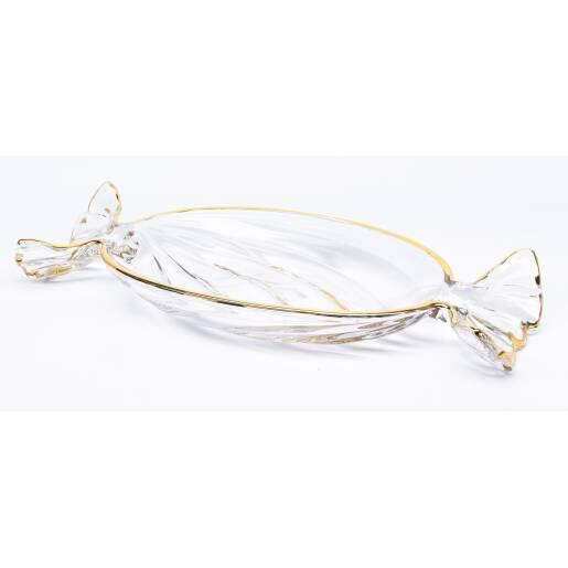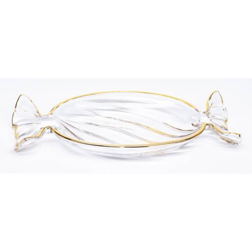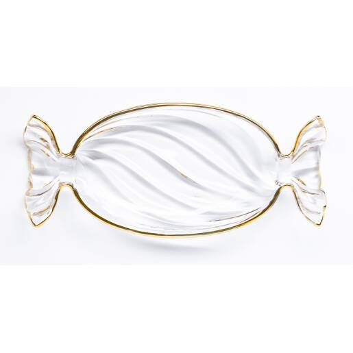Tento nádherný dekoratívny vianočný podnos v tvare salónky prinesie do vašej domácnosti šmrnc elegancie a luxusu. Vyrobený z kvalitného skla s jemnými zlatými detailmi, podnos je ideálny na vytvorenie sviatočnej atmosféry. Jeho unikátny dizajn pripomína zabalenú cukrovinku, čo z neho robí očarujúci doplnok pre vaše sviatočné stolovanie.