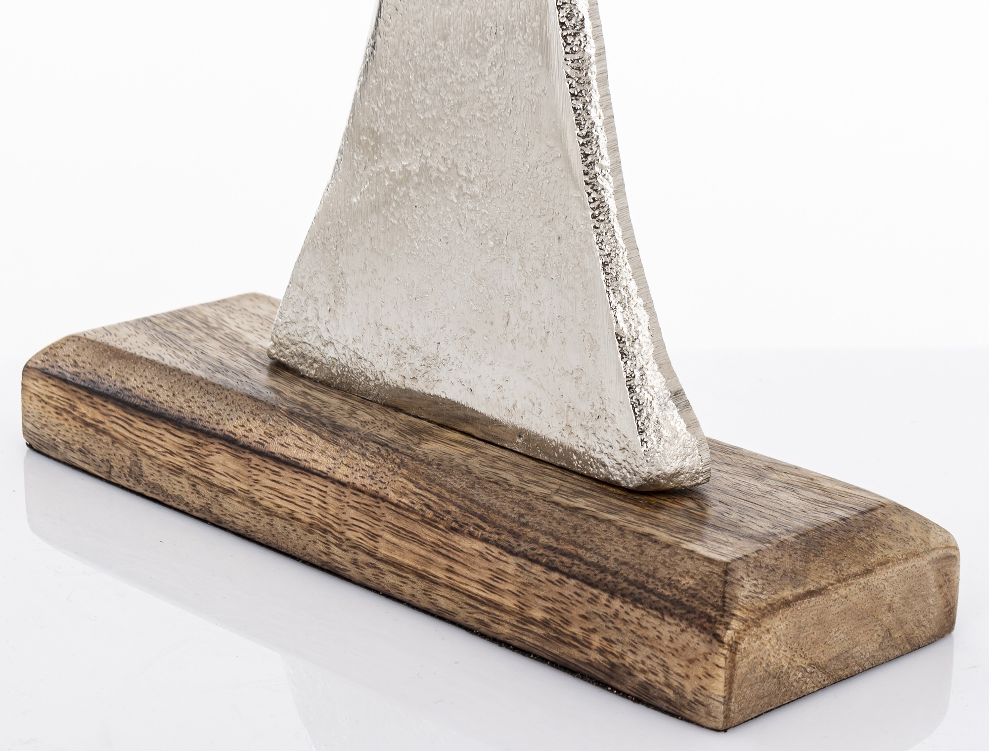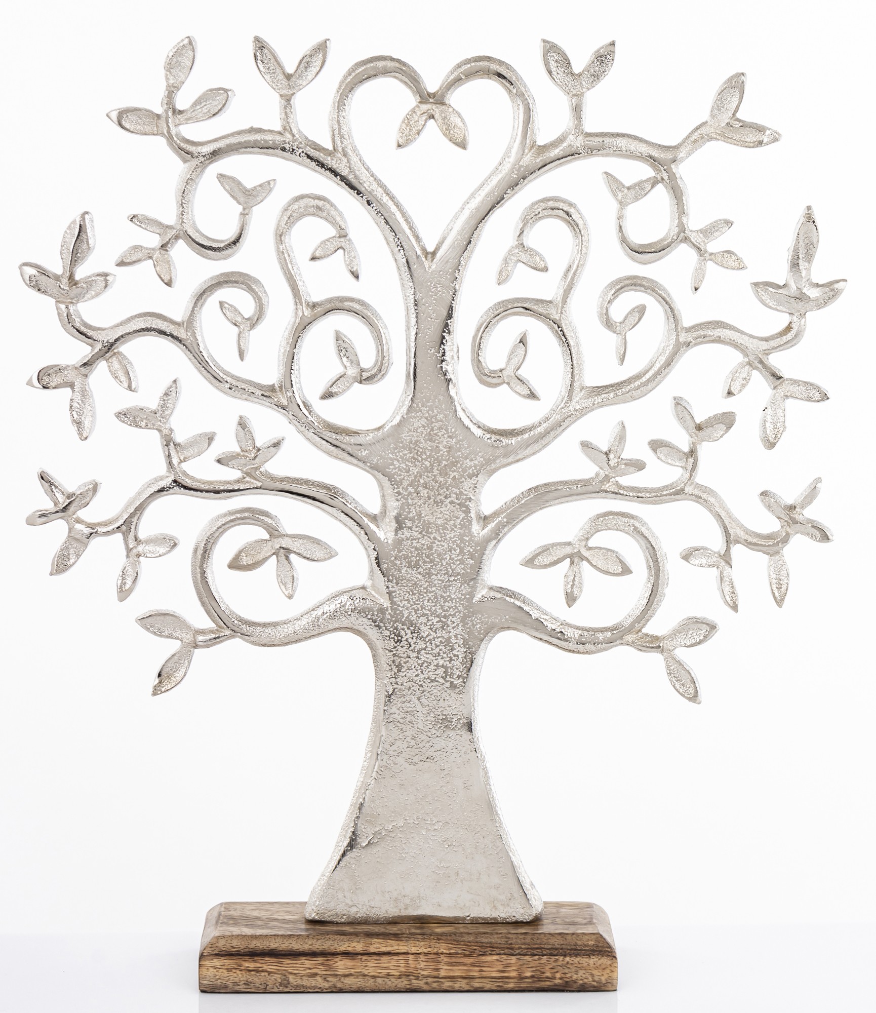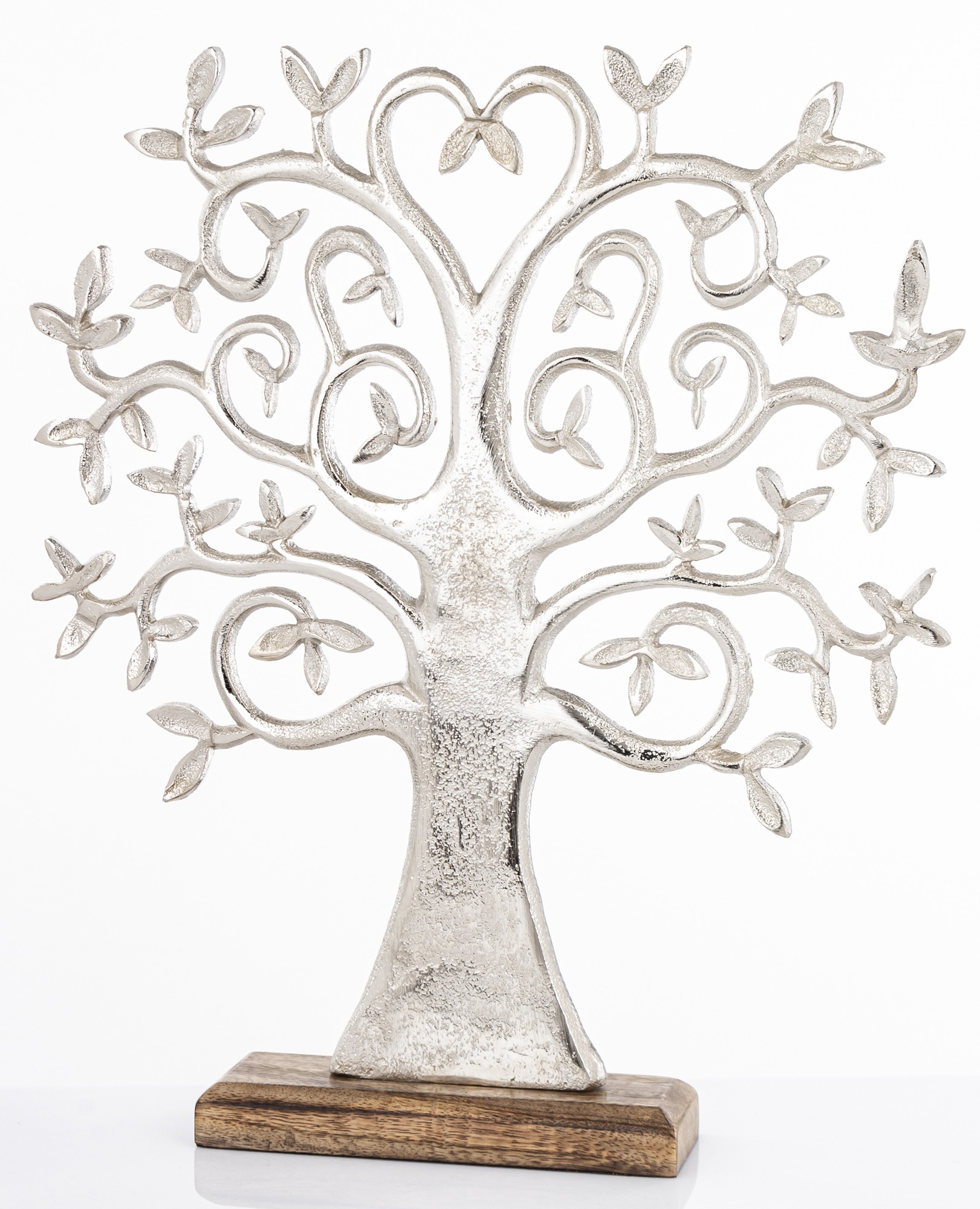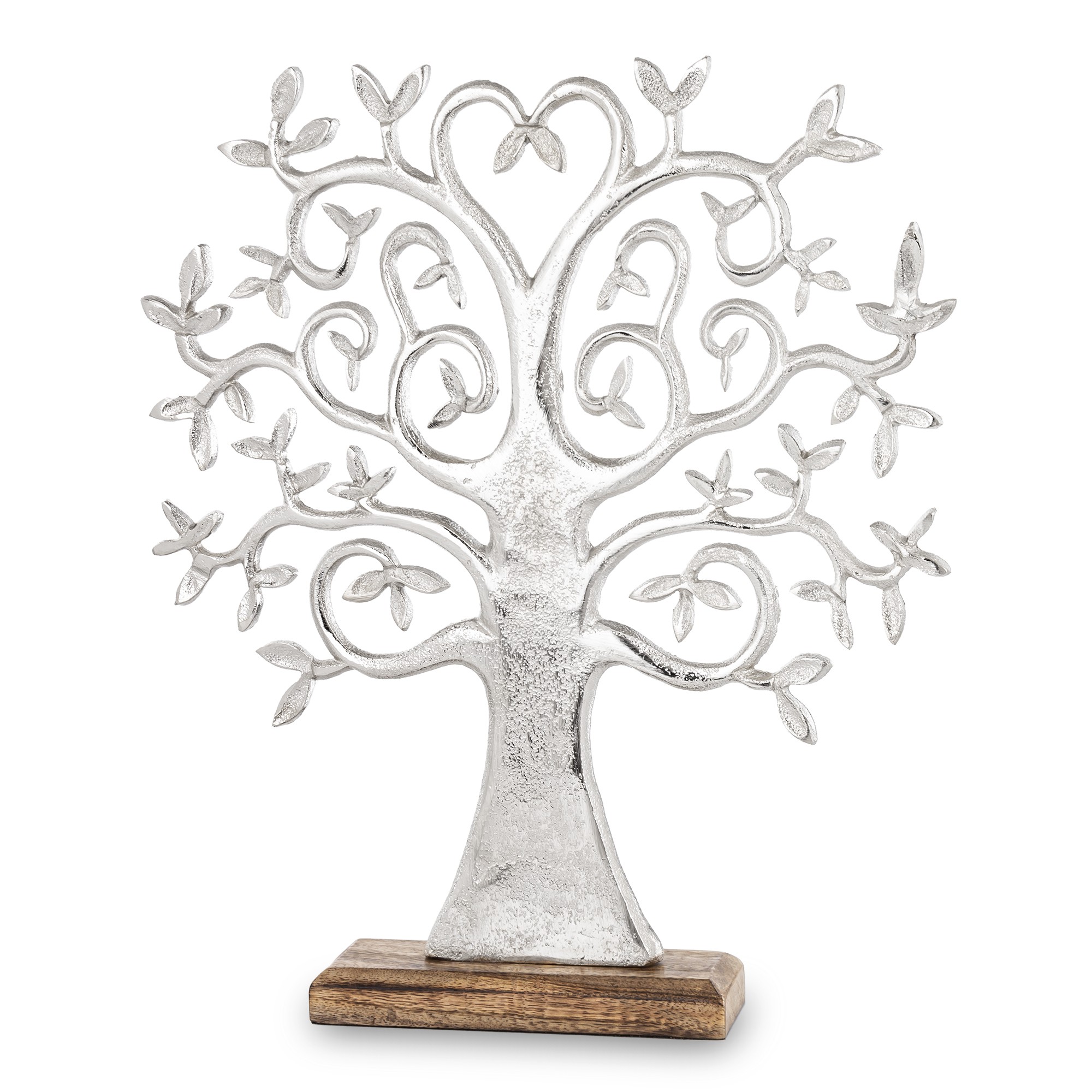 Figúrka zobrazuje štylizovaný strom, ktorý je osadený na pevnom drevenom podstavci. Drevená základňa v hnedej farbe dodáva stromu teplo a prirodzený šarm, zdôrazňujúc organický charakter stromu. Kovový strom, ktorý je nad základňou, dodáva kontrast a vyjadruje modernosť.