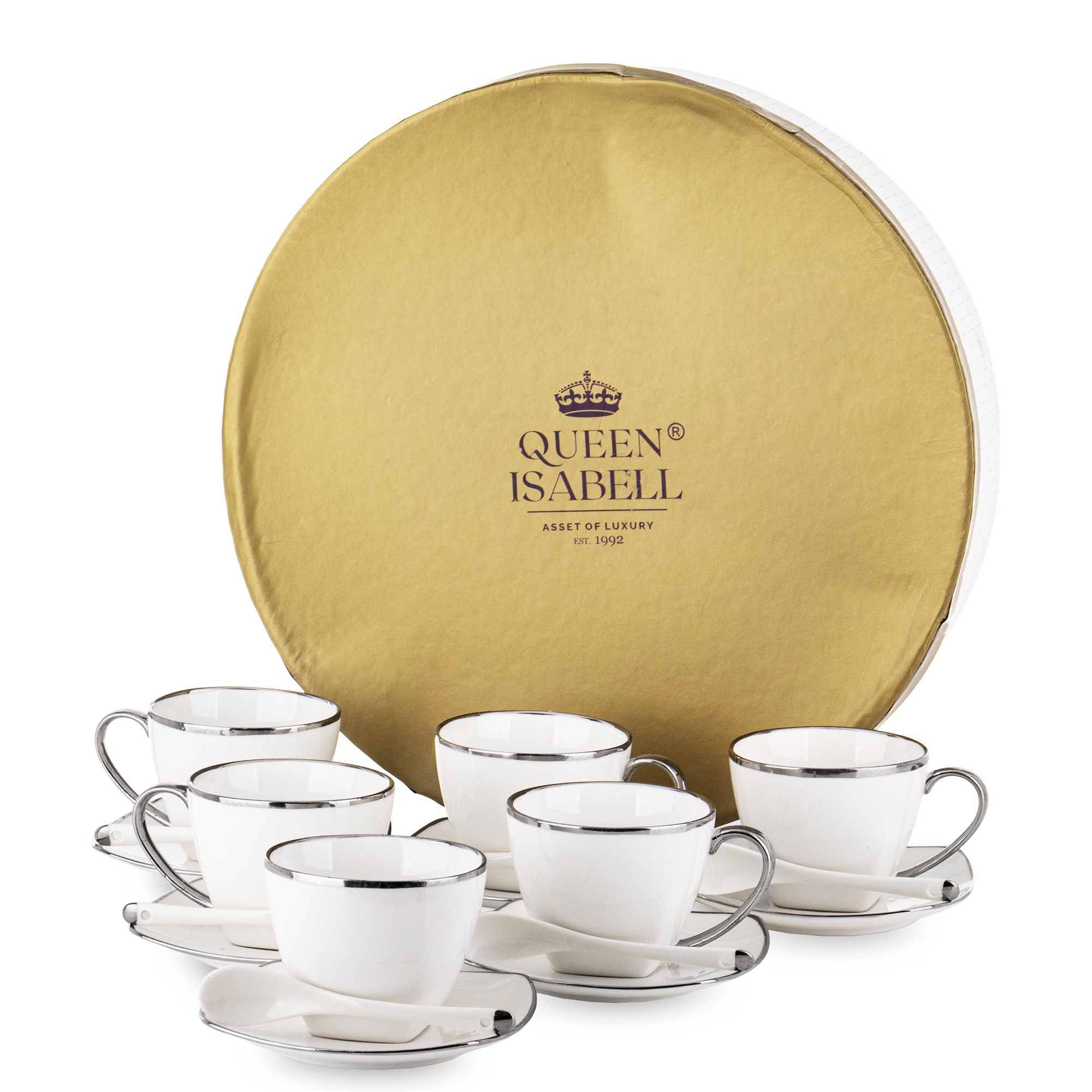 Porcelánová Sada 6 Šálok S Podšálkami – Queen Isabell Silver, 250 ml