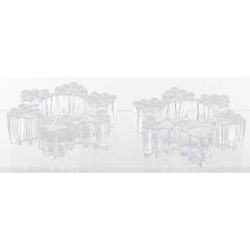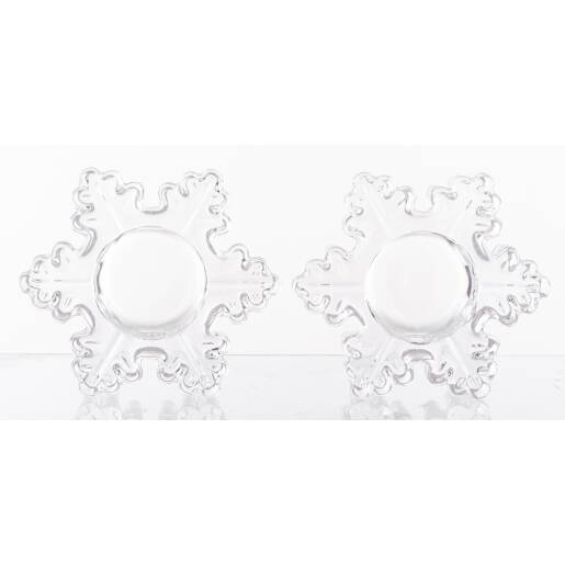 Tento set dvoch sklenených svietnikov v tvare snehovej vločky prinesie do vášho domova nádych zimnej elegancie a kúzla. Vyrobené z priehľadného skla, tieto svietniky krásne odrážajú svetlo sviečky, čím vytvárajú očarujúcu a príjemnú atmosféru.