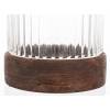 Vďaka robustnému drevenému podstavcu má svietnik stabilnú základňu, čo zaručuje jeho bezpečné použitie na rôznych povrchoch. Je to perfektný dekoratívny prvok na stôl, poličku alebo komodu, ktorý dodá vášmu interiéru prírodný šarm a sofistikovaný vzhľad.