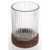 Tento elegantný sklenený svietnik s dreveným podstavcom je dokonalým doplnkom pre vytvorenie teplého a útulného prostredia vo vašom domove. Kombinácia jemného priehľadného skla a prírodného dreva z manga prináša príjemnú rovnováhu medzi moderným dizajnom a rustikálnou eleganciou. Svietnik je ideálny na umiestnenie sviečky, ktorá rozžiari každý kút miestnosti jemným a upokojujúcim svetlom.