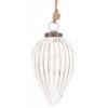 Vneste do svojej vianočnej výzdoby nádych vintage elegancie s touto veľkou sklenenou guľou v tvare kvapky. Jej strieborné a biele detaily, doplnené jemnými ryhovanými linkami, vytvárajú očarujúci lesk, ktorý zaručene osvieži váš vianočný stromček. Závesný povrázok dodáva rustikálny charakter, ktorý sa skvelo hodí k tradičnému aj modernému sviatočnému štýlu. Tento nádherný kúsok v sebe spája nadčasovú eleganciu s originálnym vintage dizajnom, čím vytvára dokonalú atmosféru Vianoc plnú nostalgie a štýlu.