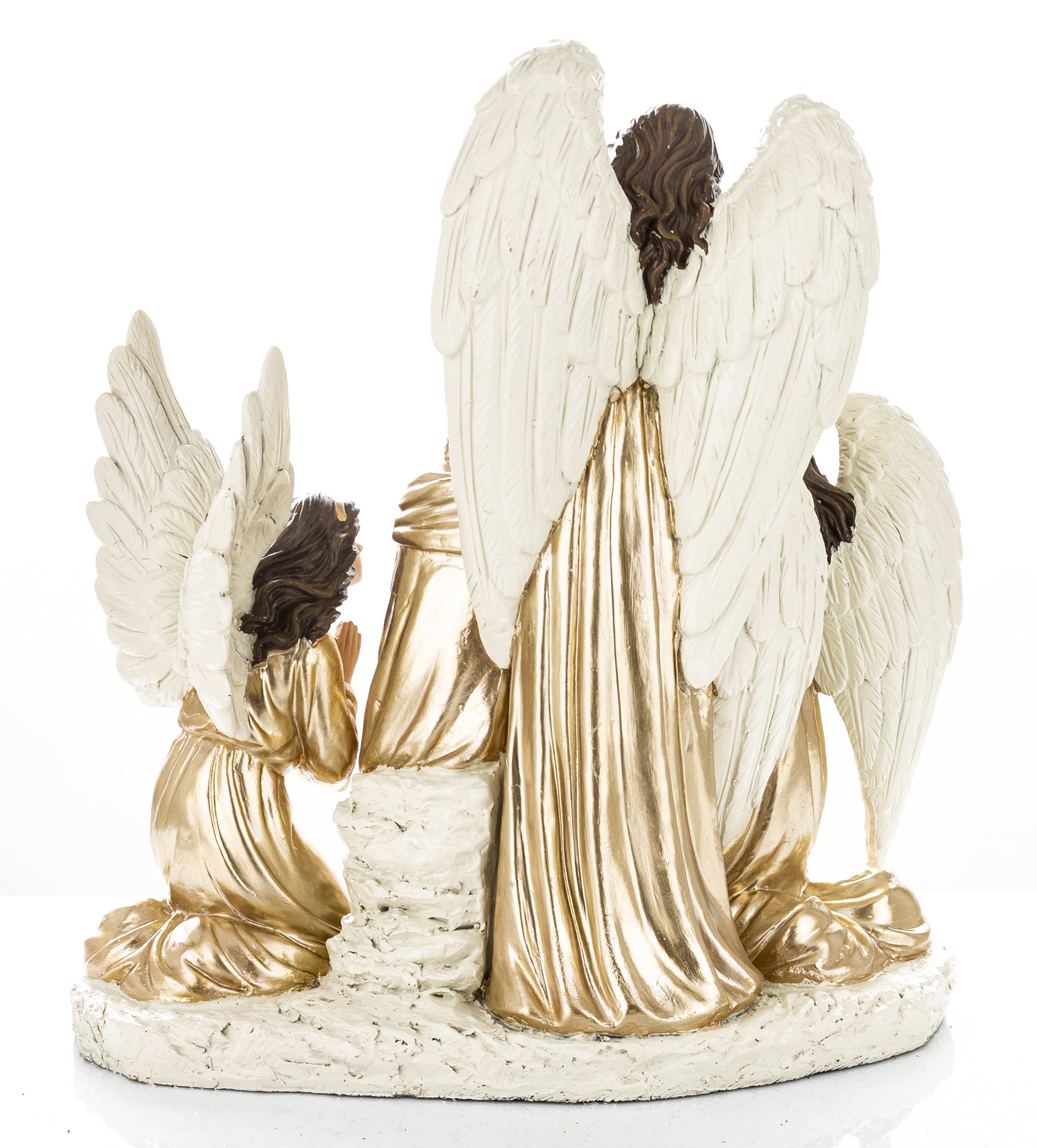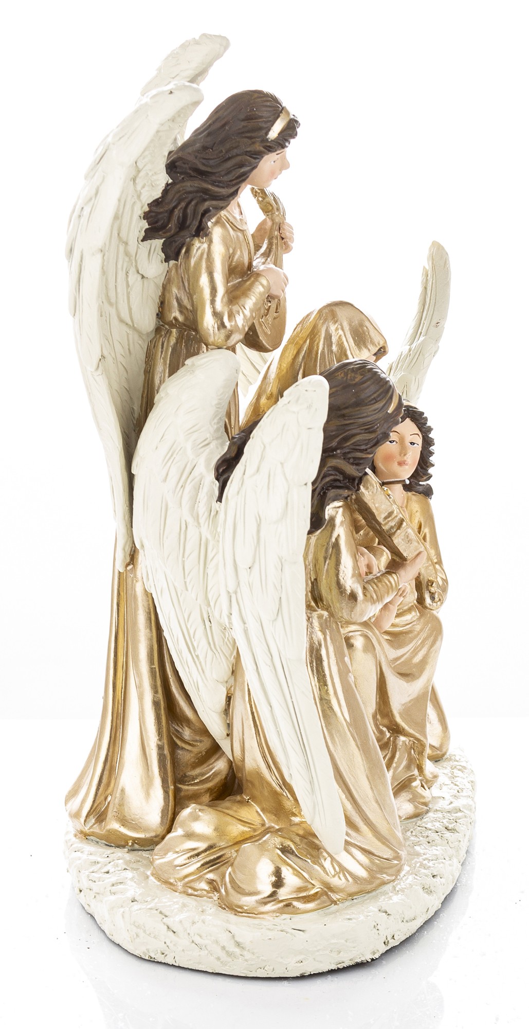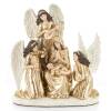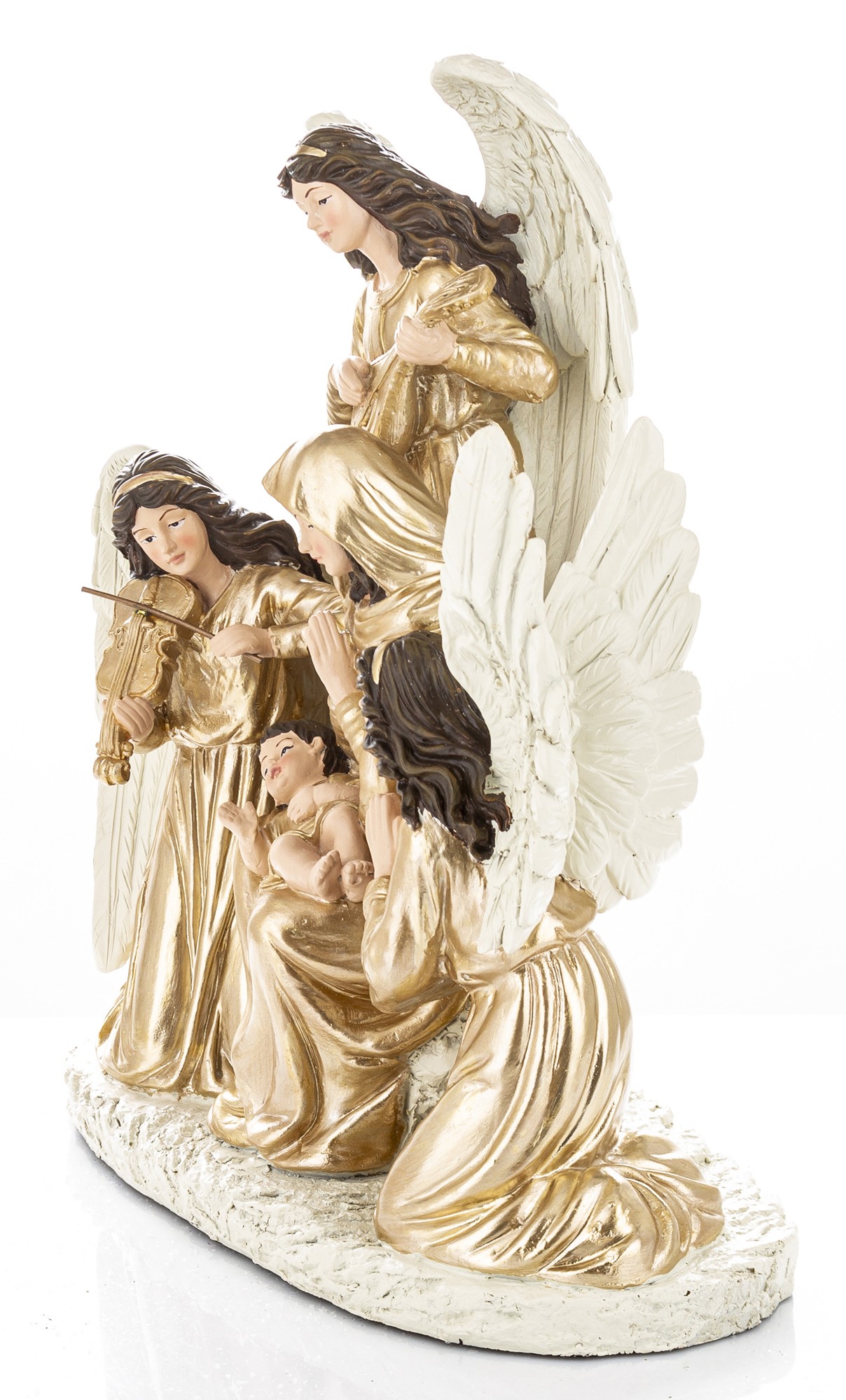 Vneste do svojho domova pokoj a nádheru Vianoc s týmto impozantným vianočným betlehemom, ktorý zobrazuje Svätú rodinu obklopenú anjelmi. Tento nádherný betlehem je vyrobený z odolnej umelej hmoty a zdobený v zlatých a bielych tónoch, čo dodáva celej scéne luxusný a duchovný nádych. Detaily na figúrach, vrátane jemných rysov anjelov hrajúcich na hudobné nástroje, pridávajú betlehemu jedinečnosť a eleganciu. Tento betlehem je ideálny ako ústredný bod vašej vianočnej výzdoby, ktorý pripomína pravý význam Vianoc.