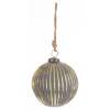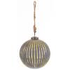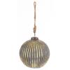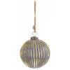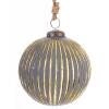Dodajte svojmu vianočnému stromčeku nádych vintage elegancie s touto nádhernou sklenenou guľou. Sivá farba, doplnená jemnými zlatými akcentmi, vytvára úžasný kontrast, ktorý okamžite upúta pozornosť a zútulní váš interiér. Guľa je zavesená na rustikálnom povrázku, čo jej dodáva prirodzený a autentický vzhľad, ideálny pre milovníkov nostalgického sviatočného dekoru. Jej detailné ryhovanie krásne zachytáva svetlo, čím pridáva hrejivý lesk do vašej sviatočnej výzdoby. Tento jedinečný kúsok perfektne doplní každý vianočný stromček.
