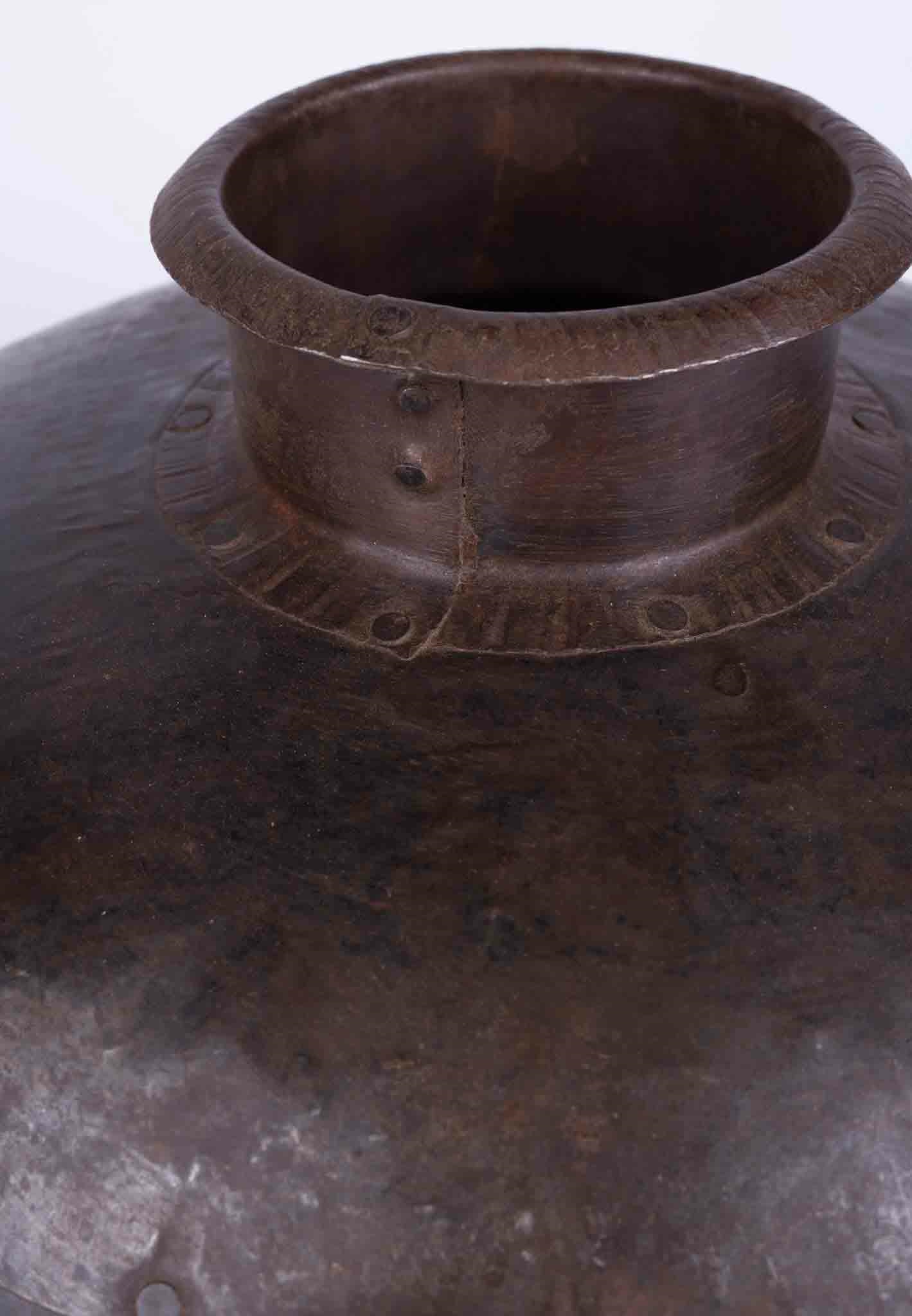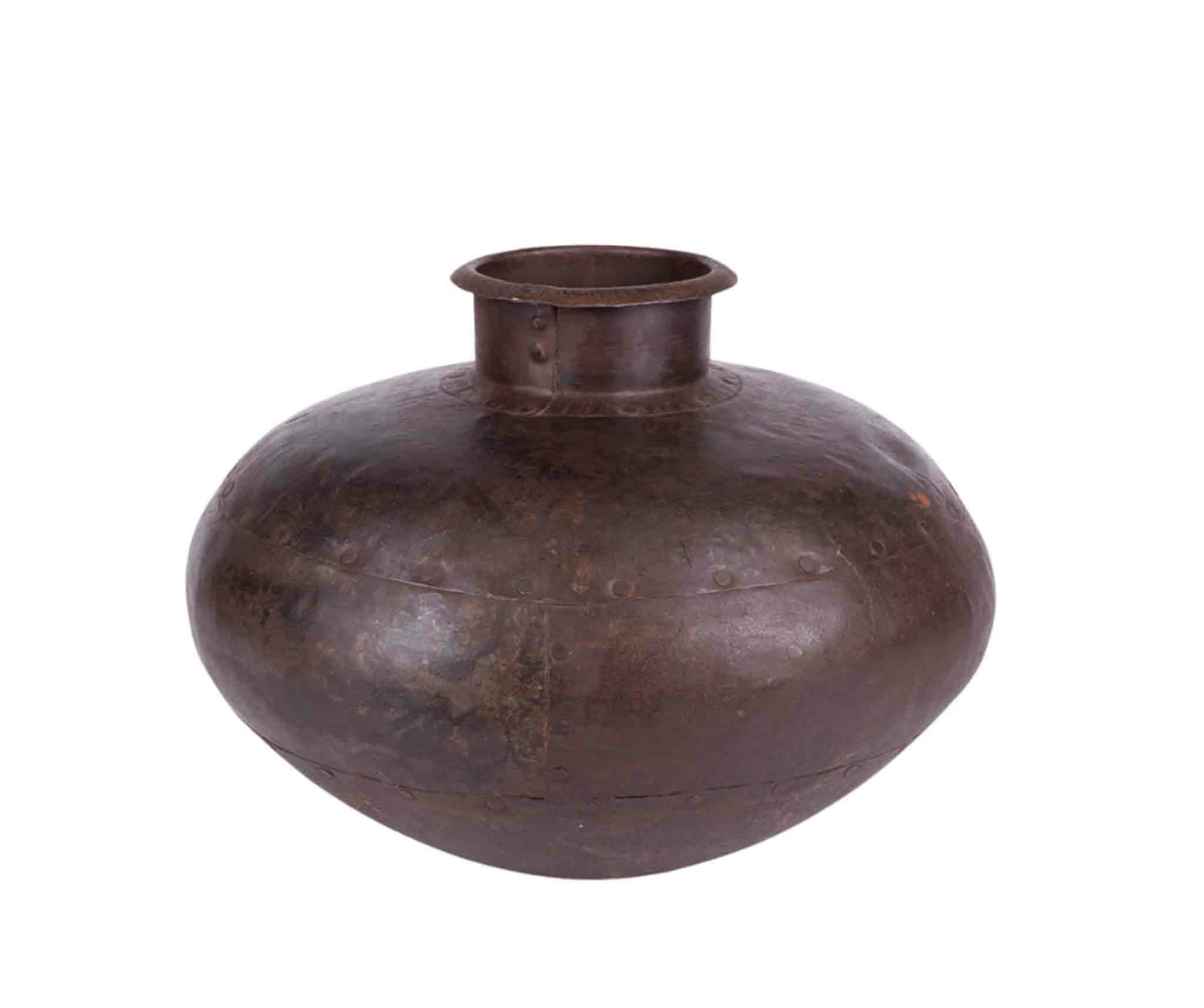 Patinovaná Hnedá Kovová Váza – Rustikálny Doplnok V Brocante Štýle