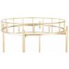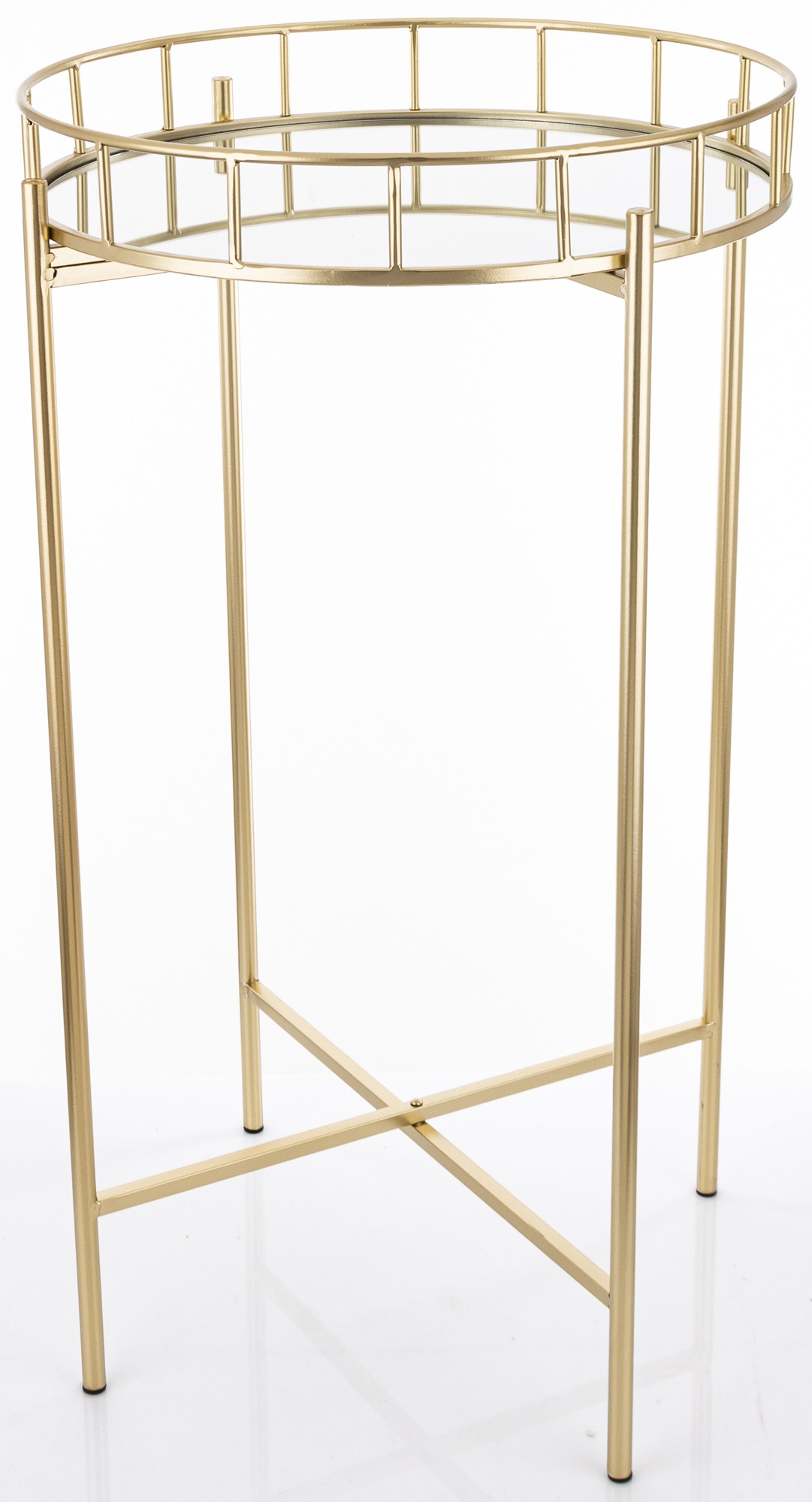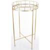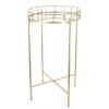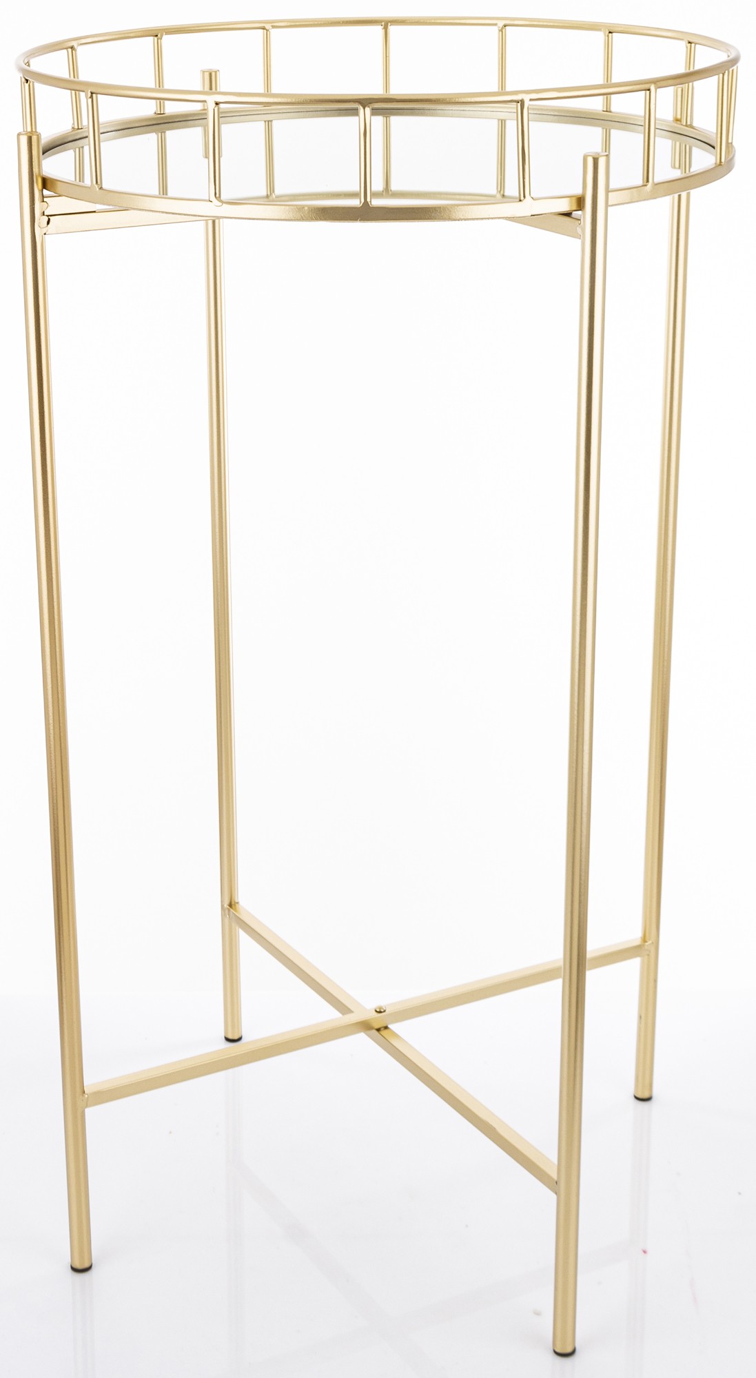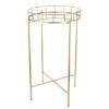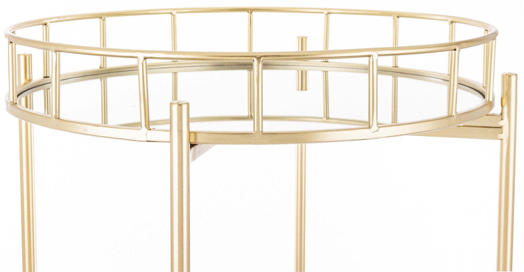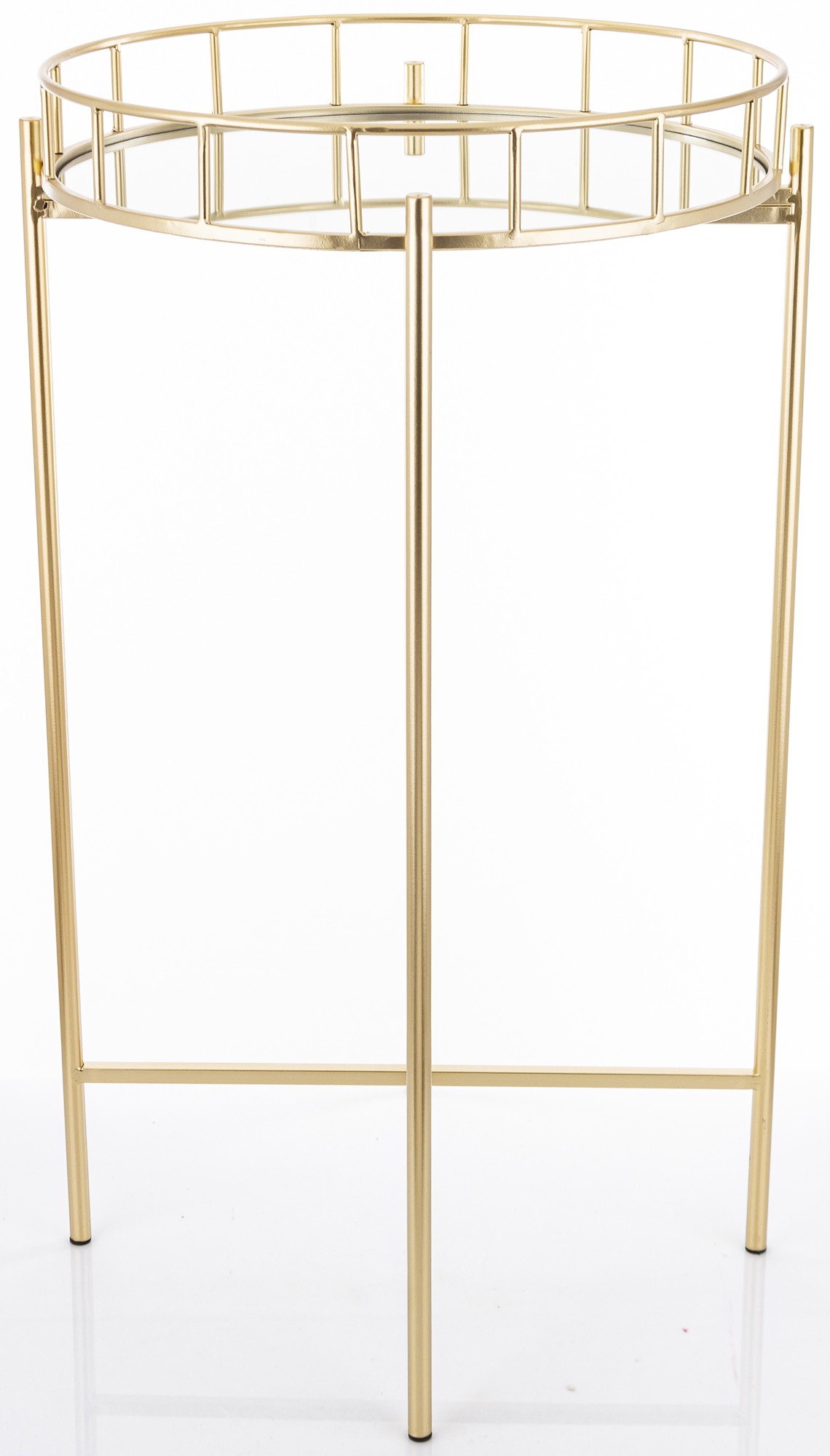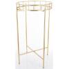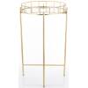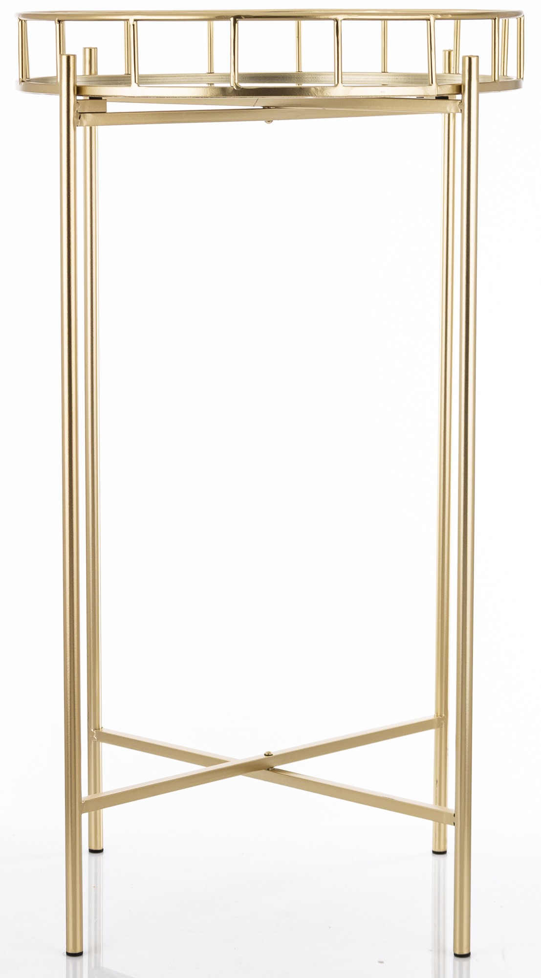 Stolík je vyrobený z odolného kovu v zlatej farbe, čo mu dodáva luxusný vzhľad. Vďaka zlatému odtieňu stola vyžaruje teplo a príťažlivosť a dodáva miestnosti zvláštny šarm.