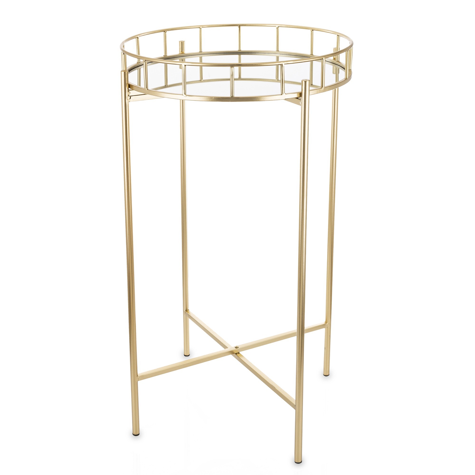 Zlatý kovový príručný stolík so zrkadlovou doskou je zvyčajne kompaktný, čo z neho robí dokonalý doplnok do rôznych priestorov. Môže pôsobiť ako odkladací stolík pri pohovke, nočný stolík vedľa postele alebo jedinečný dekoračný stolík do predsiene či chodby.