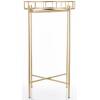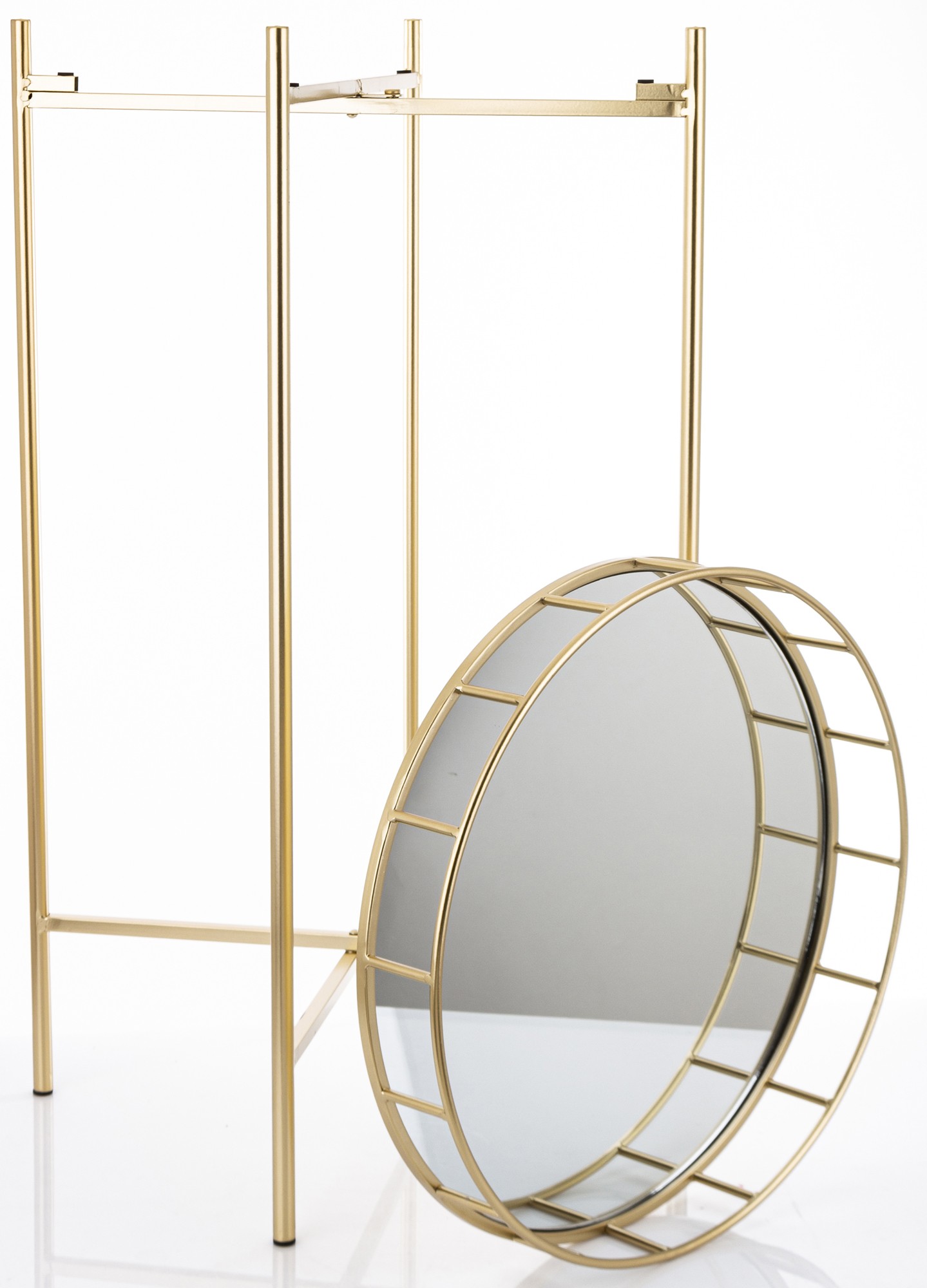 Zlatý kovový príručný stolík so zrkadlovou doskou je nápadný kus nábytku, ktorý dodá eleganciu a pôvab každej miestnosti. Tento štýlový príručný stolík je dokonalým dekoratívnym akcentom, ktorý spája funkciu praktického kusu nábytku s umeleckým prvkom.